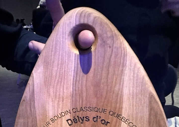 C’est dans le cadre du cours Travail du bois, par l’entremise de la coopérative Éboriante, que les nouveaux prix Délys ont vu le jour. Cette planche de bois gravée du nom des vainqueurs des meilleurs boudins québécois en 2025 restera à Boucherville et trônera derrière le comptoir du Café Saint-Laurent.