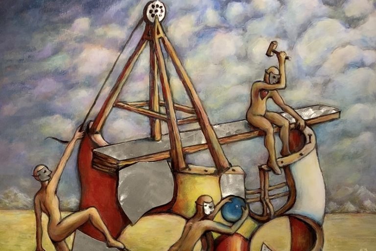 Originaire de l’Uruguay, cet artiste multidisciplinaire, qui vit depuis quelques années à Boucherville avec sa conjointe, s’intéresse au masque comme symbole, tant dans sa pratique picturale et sculpturale que dans sa dimension sociale et philosophique. Dans son exploration plastique du sujet, Osvaldo Napoli voit le masque comme une façade que les individus peuvent ériger pour afficher du pouvoir, dissimuler une faiblesse ou tout simplement se conformer aux attentes sociales.