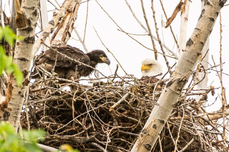 À Boucherville, depuis 2021, le couple a ainsi élevé plusieurs jeunes, en moyenne deux par année, qui ont adopté une nouvelle destination, peut-être dans les environs. « Les juvéniles de l’année doivent attendre cinq ans, en moyenne, pour atteindre la maturité, caractérisée entre autres par le distinctif plumage blanc aux extrémités. Il mange surtout du poisson, mais il se nourrit à peu près de tout. Il peut même, à ses heures, être charognard », de préciser notre guide.