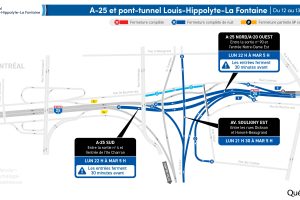 Réfection majeure du tunnel Louis-Hippolyte-La Fontaine Le tunnel Louis-Hippolyte-La Fontaine effectuera une fermeture complète durant la nuit du 12 au 13 janvier.