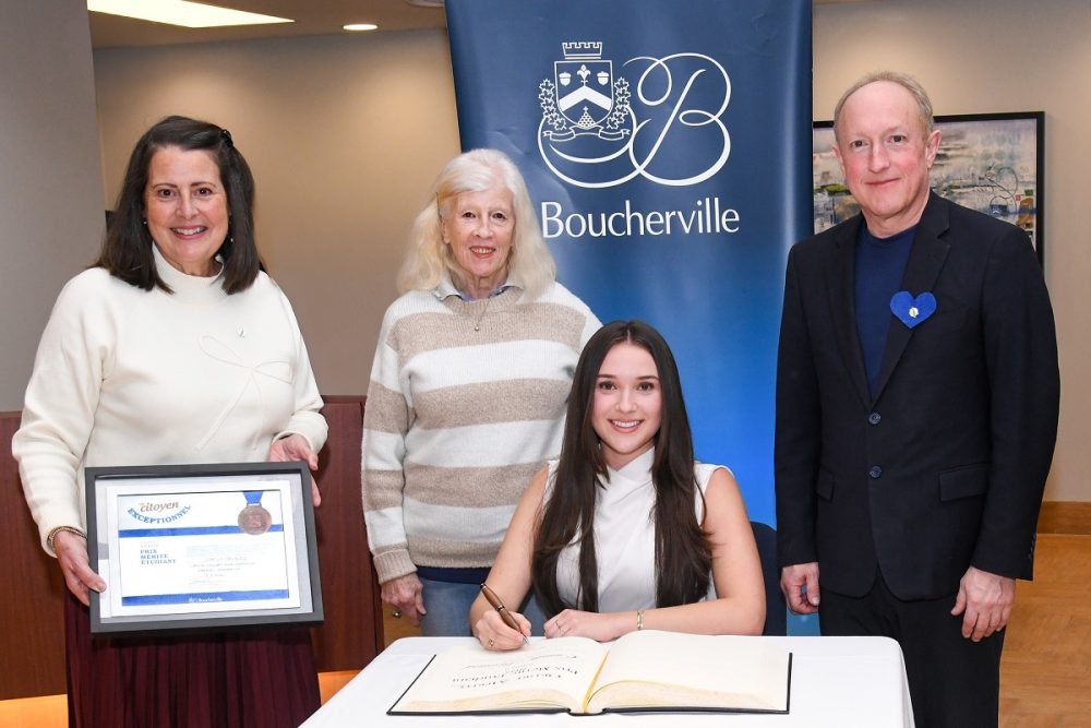 La Ville de Boucherville a d’ailleurs profité de cette occasion pour remettre le prix Mérite étudiant, dans le cadre de sa cérémonie de l’Ordre du mérite tenue le 16 février dernier, à Camila Bernard pour souligner son excellence scolaire.