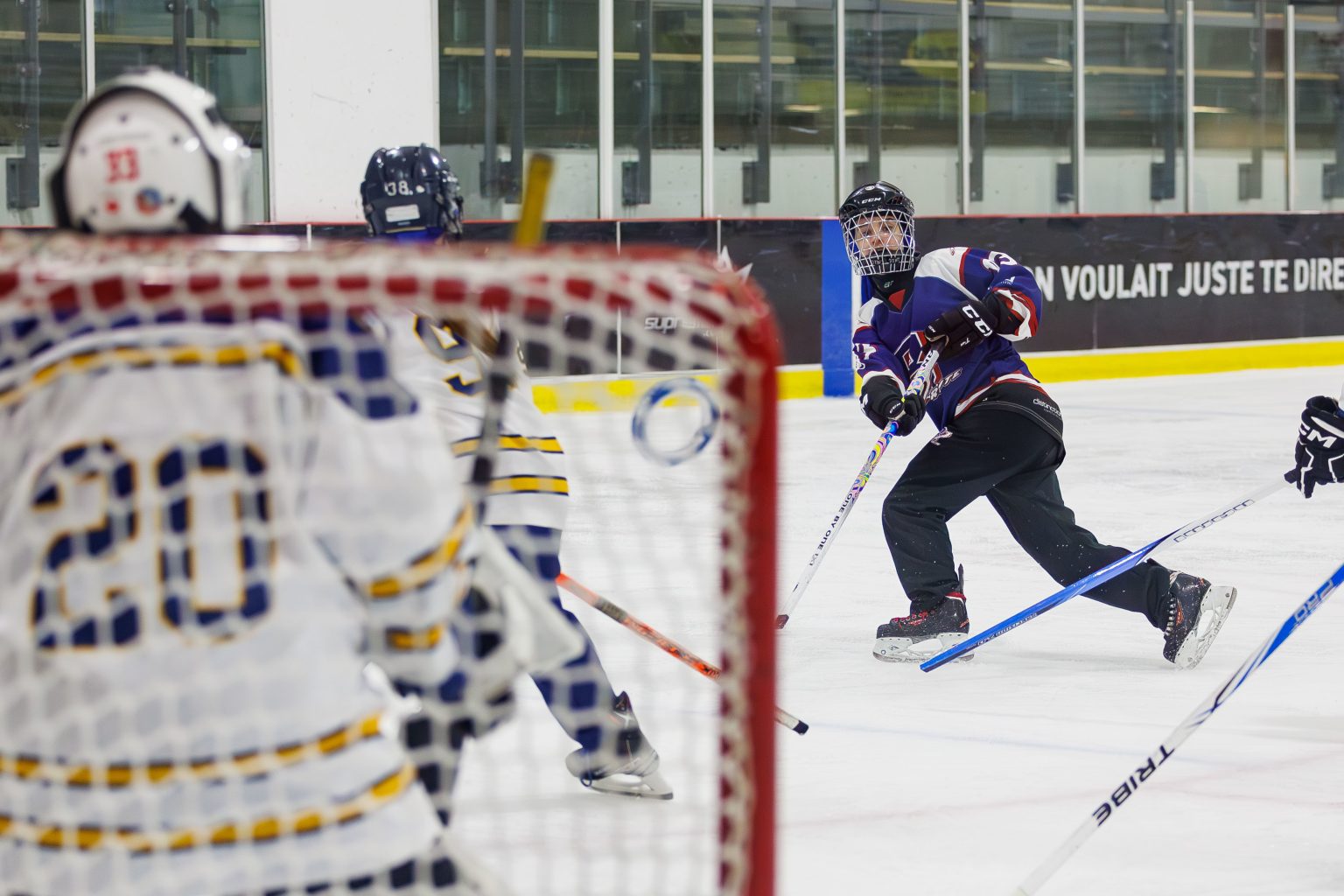 Sophie Lambert, présidente du club l’Orbite de Boucherville, nous a accueillis à quelques jours de l’événement phare de la saison. « C’est l’un des plus gros tournois de ringuette au Québec, assurément le plus grand de la Rive-Sud près de Montréal. » La présidente a accepté de nous parler d’un sport encore mal connu du grand public. Pourtant, du 20 au 25 janvier, ce sont près de 900 joueuses qui se rassembleront pour lancer l’anneau dans le but.